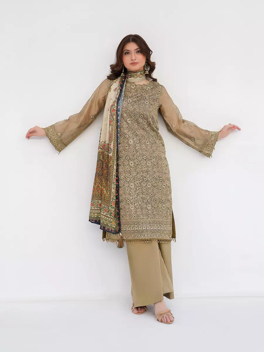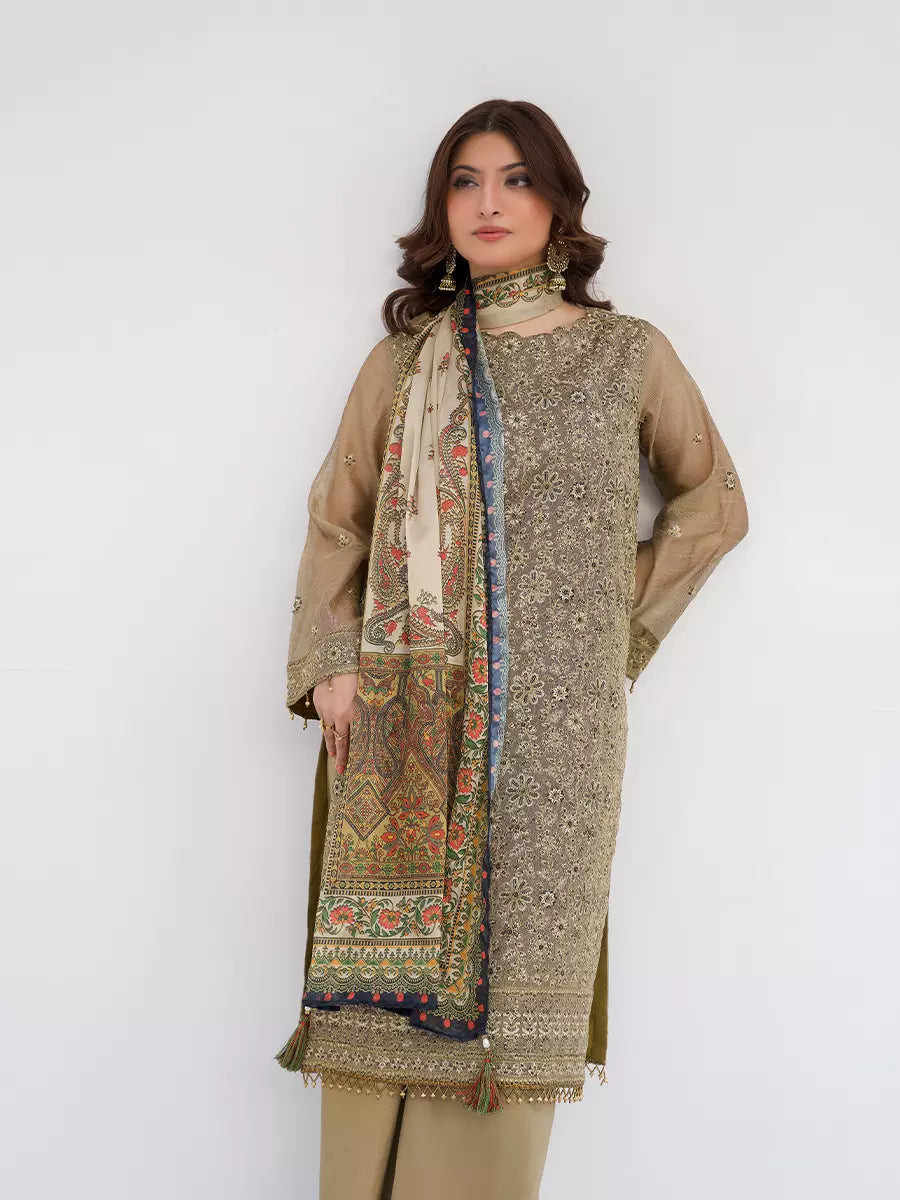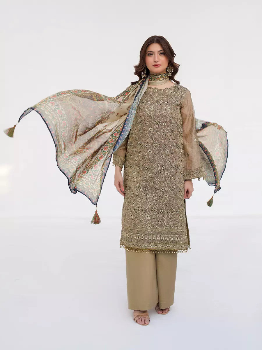 Note: Extra tassels, laces and Boxes for shoot purpose wouldn't be included in Unstitched Dresses, They are only for Model Shoot Purpose.