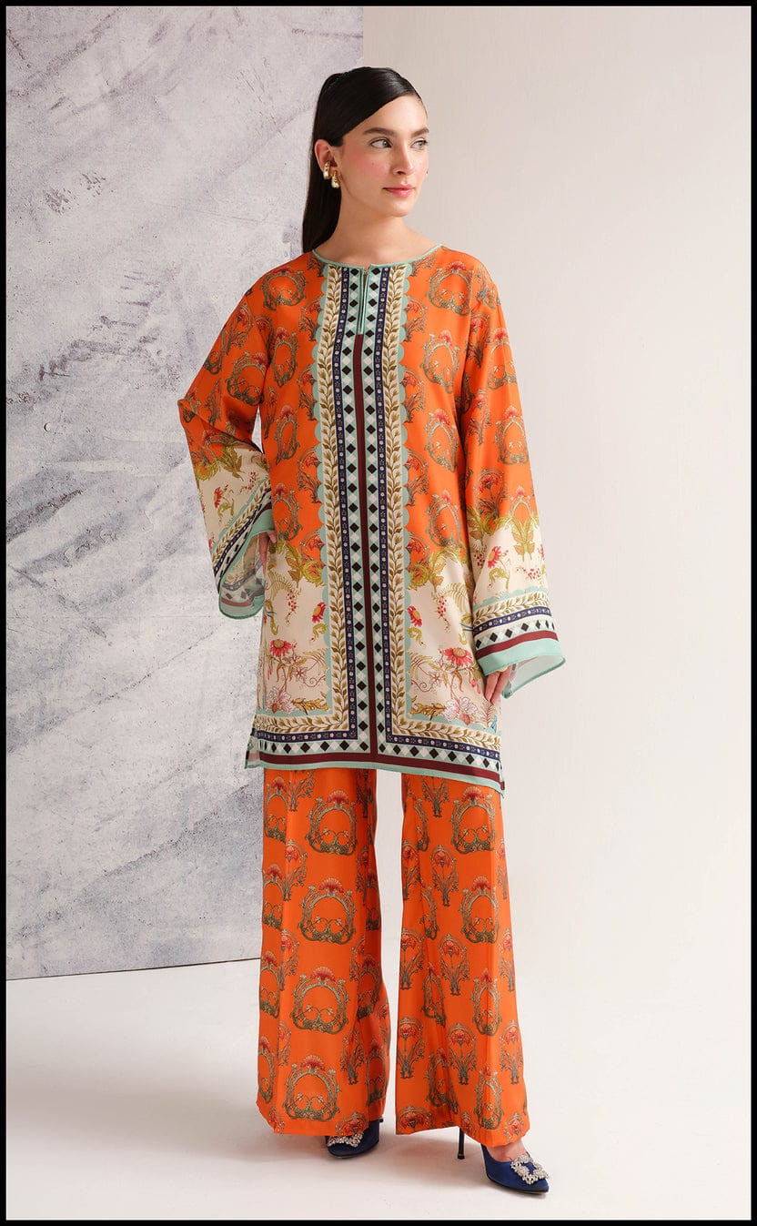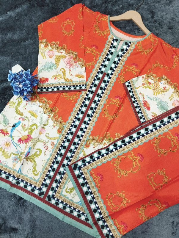 PREMIUM ORANGE FRONT AND BACK PRINTED SHIRT AND PRINTED FLAPPER 2 PEACE CORD SET ?